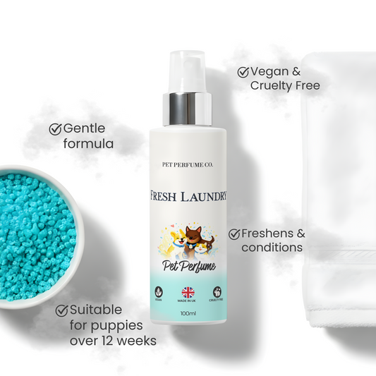 Yes all our pet perfumes and shampoos are suitable for puppies over 12 weeks. Smaller dogs and puppies require just one spray.